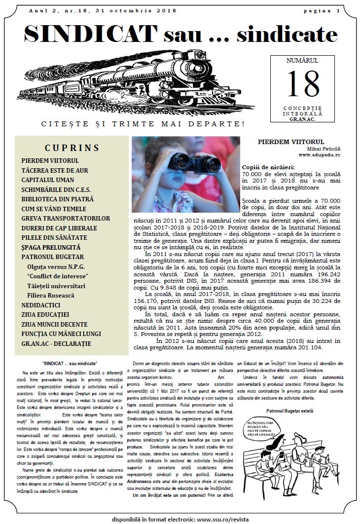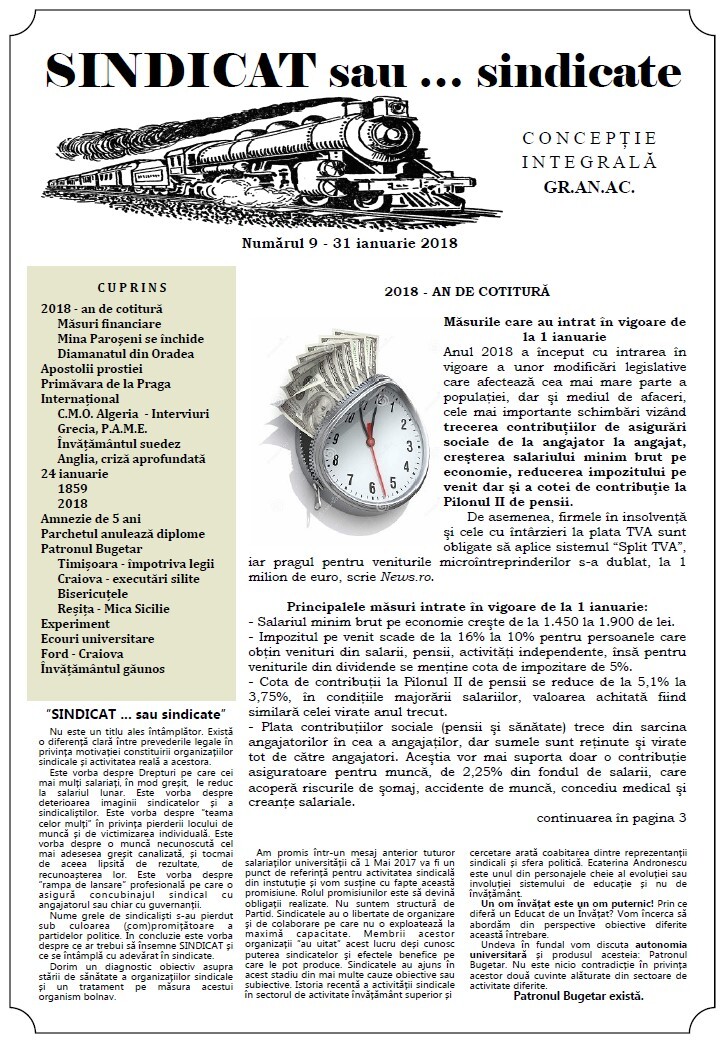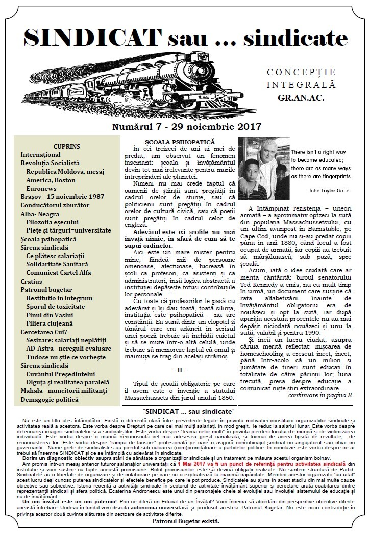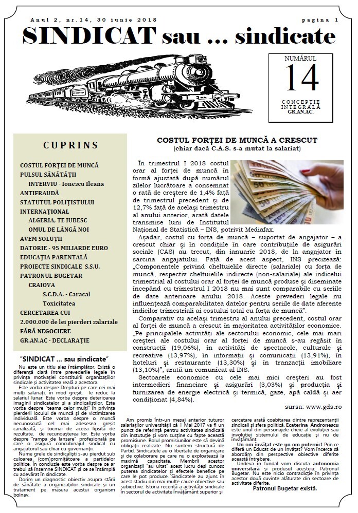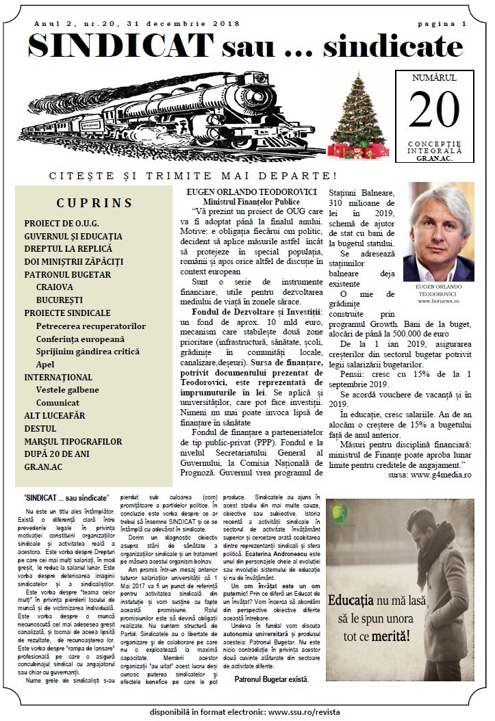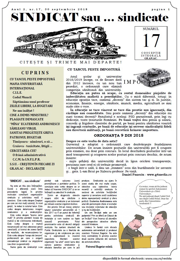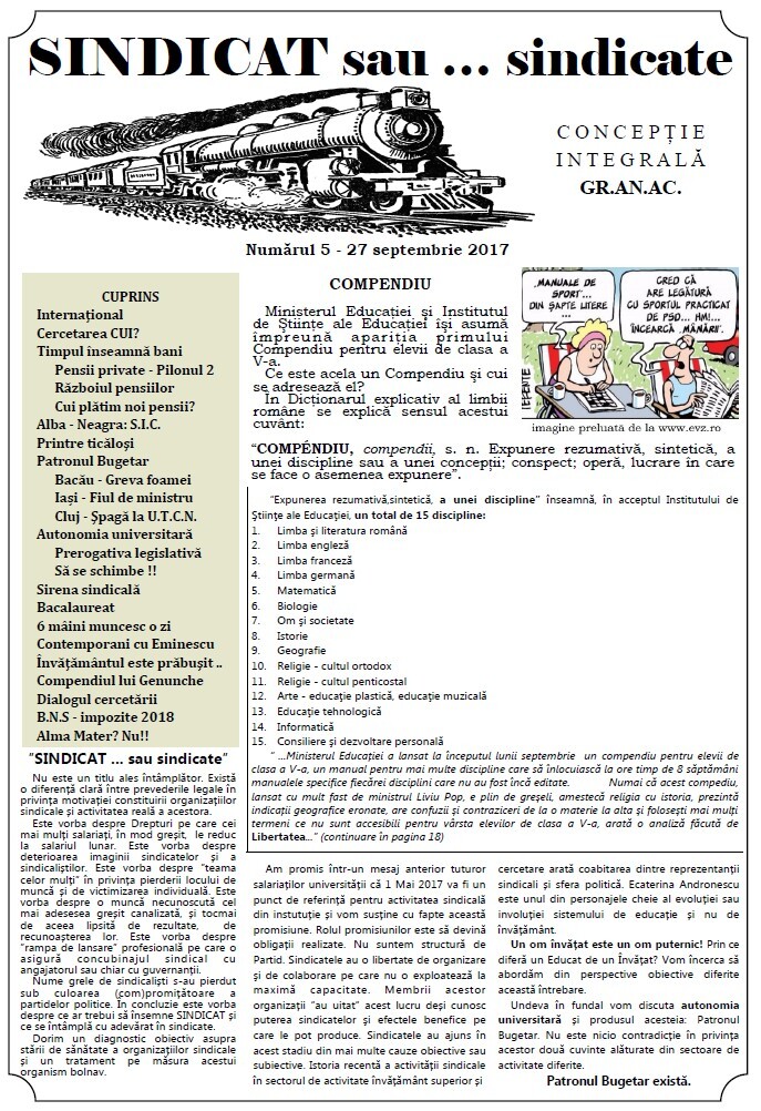 ”SINDICAT ... sau sindicate” este un instrument pe care S.S.U., cu sprijinul GR.AN.AC. (GRup de ANaliză și ACțiune) îl folosește pentru a informa, critica sau promova idei, tendințe sau acțiuni desfășurate în cadrul universității craiovene. Obiectivul pe care îl urmărim este acela de a redacta și de a transmite un buletin informativ sindical, în mod regulat, către toți salariații, în aceeași zi și în același timp.